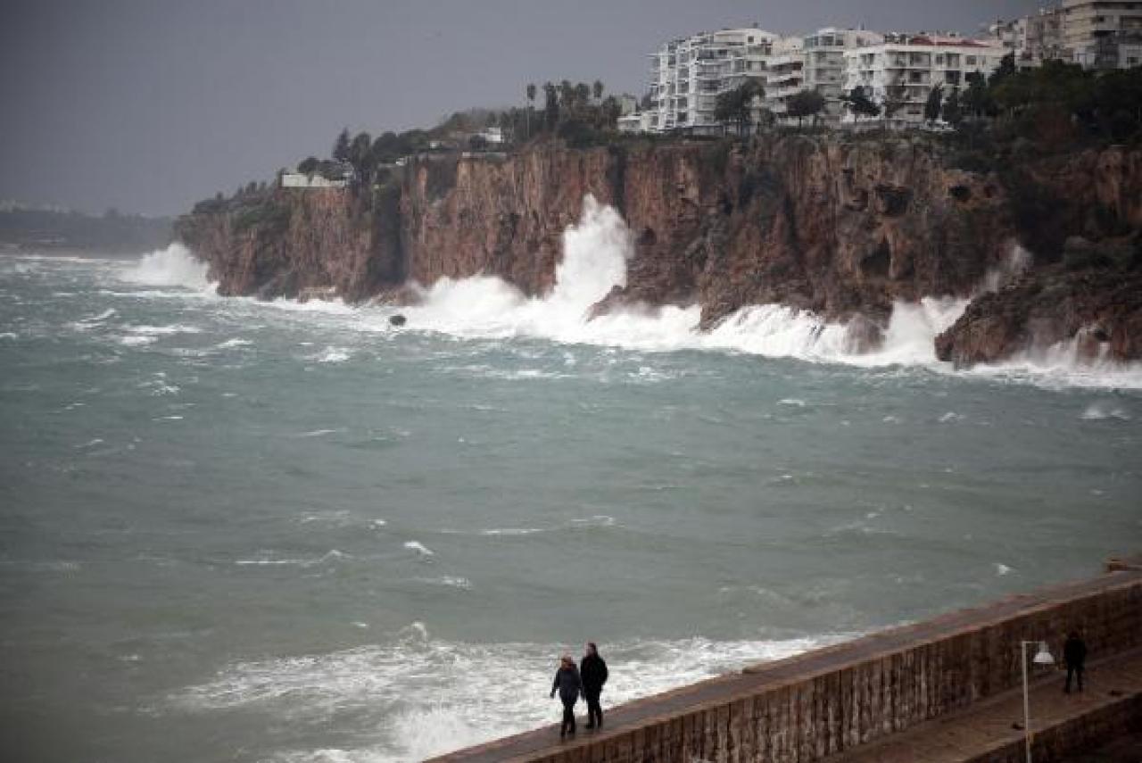 Antalya'da sabah saatlerinde başlayan şiddetli fırtına, özellikle denize kıyı noktalarda etkili oldu. Kent merkezinde fırtına nedeniyle denizde oluşan dalgalar 40 metre yükseklikteki falezleri dövdü.