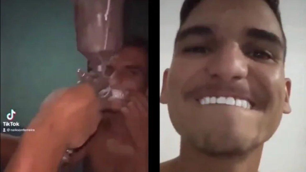 Hangi ülkede çekildiği bilinmeyen görüntülerde bir adamın, dişlerini araba boyası ile arkadaşına boyattığı anlar yer aldı.