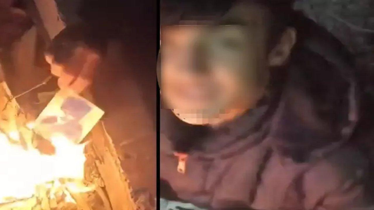3 lise öğrencisi yaktıkları ateşe Mustafa Kemal Atatürk’ün fotoğrafını attı. Atatürk’ün fotoğrafını yakan öğrencinin gülerek kendisini cep telefonu ile kaydeden kişiye poz verdiği görüldü.