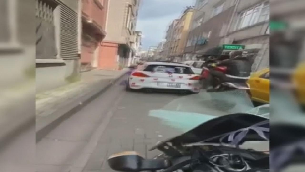 Bayrampaşa'da düğün konvoyunda motosikletin önünün kaldıran sürücü gelin arabasına çarptı. Kaza arkasından gelen bir başka motosikletlinin kask kamerasına yansıdı.