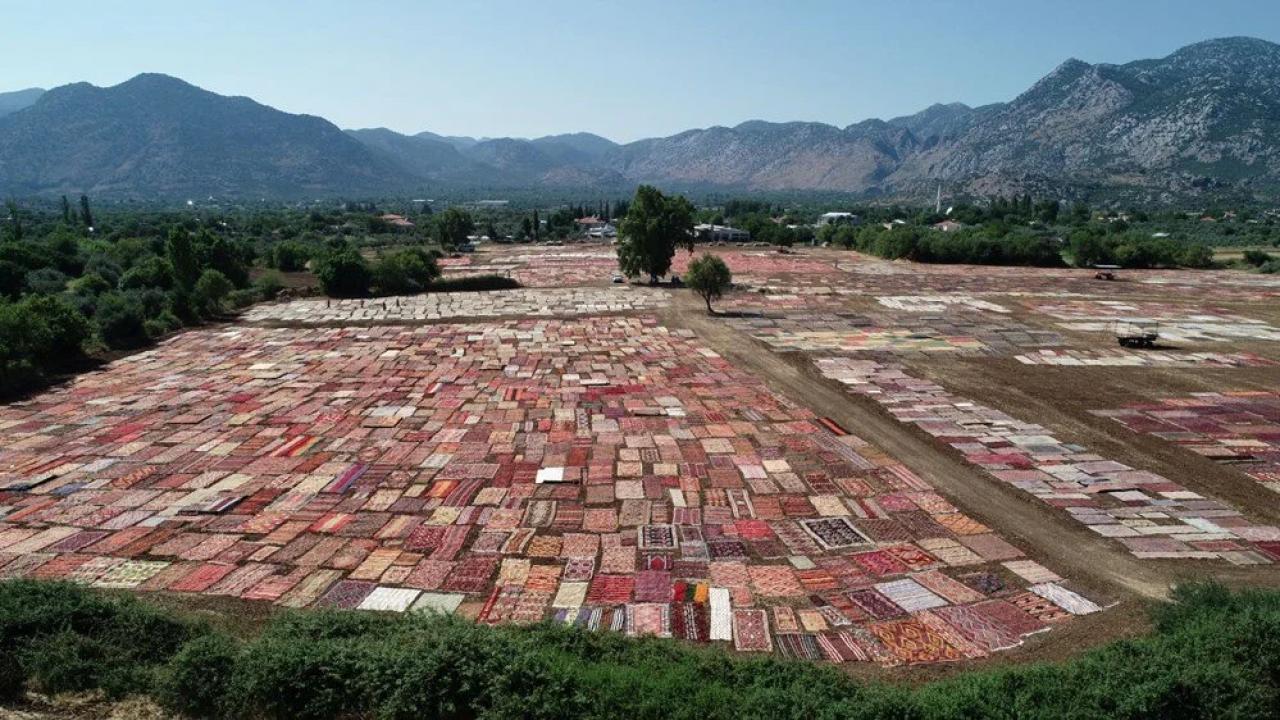 Turizm kenti Antalya'nın Döşemealtı ilçesinde kışın buğday ekilen tarlalar, yazın kavurucu sıcaklarda halı tarlasına dönüşüyor. Farklı renk ve desenlerde dokunan yün halılar, yüzlerce dönüm araziye serilip günlerce güneşte bekletiliyor. Nem nedeniyle içerilerinde biriken ve zarar veren bakteri ve böceklerden arındırılan halıların renkleri de güneşle birlikte daha pastel tonlara kavuşuyor. Döşemealtı ilçesinde yıllardır halı alım ve satışının yanı sıra onarımını da yapan Halil Börekçi, bu yıl buğday hasadının ardından 25 dönümlük tarlasına 2 bine yakın halı serdi. Çalışanlar, sabah erken saatlerde halıları tarlaya serip, gölgelik alanlarda onarılması gerekenleri onarıyor. Öğleden sonra da halıların diğer yönleri çevrilip akşama kadar güneşlendiriliyor. Bu işlem günlerce sürüyor. Halıların tamamının yün dokuma olduğunu belirten Halil Börekçi, İç Anadolu ve Karadeniz bölgesinden dahi güneşte bekletilmesi için gönderilen halılar olduğunu söyledi. Halılar arasında nadir bulunan ve yüksek fiyatlardan satılanlar da var.