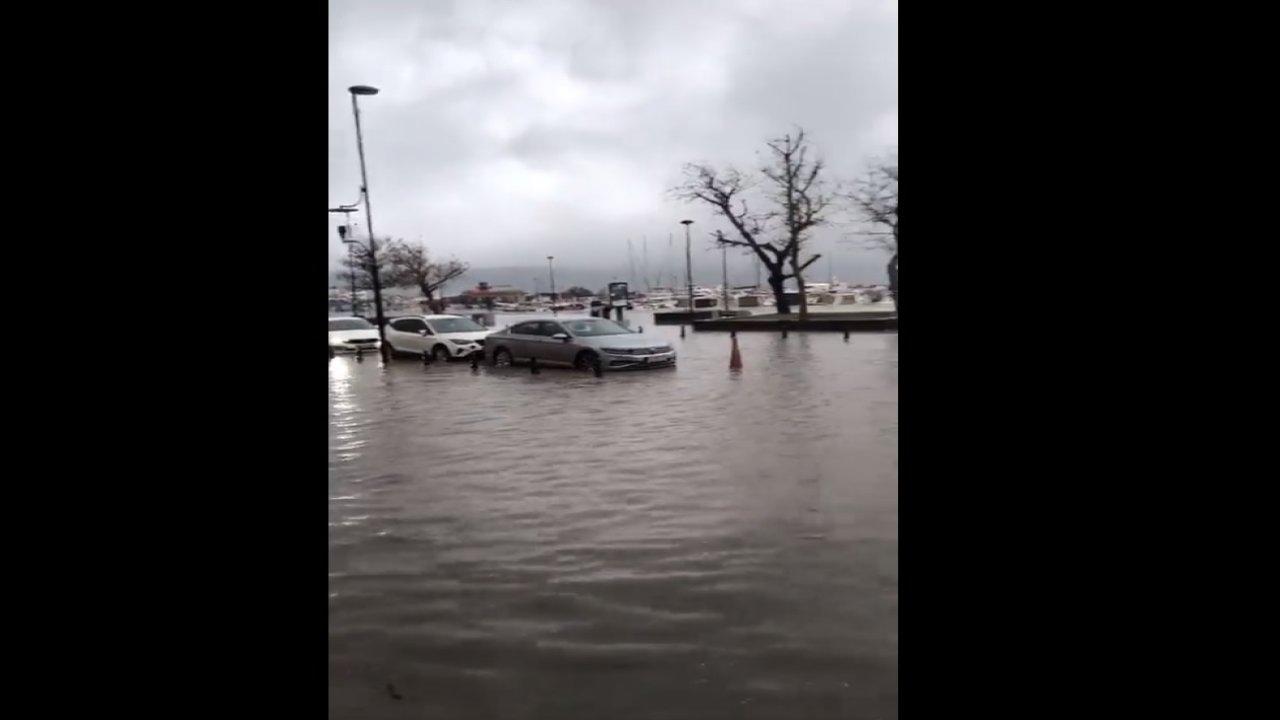 Sokakta bulunan araçlar su baskınının etkisiyle ilerlemekte güçlük çekti. O anlar ise bir vatandaşın cep telefonu kamerasına saniye saniye yansıdı.