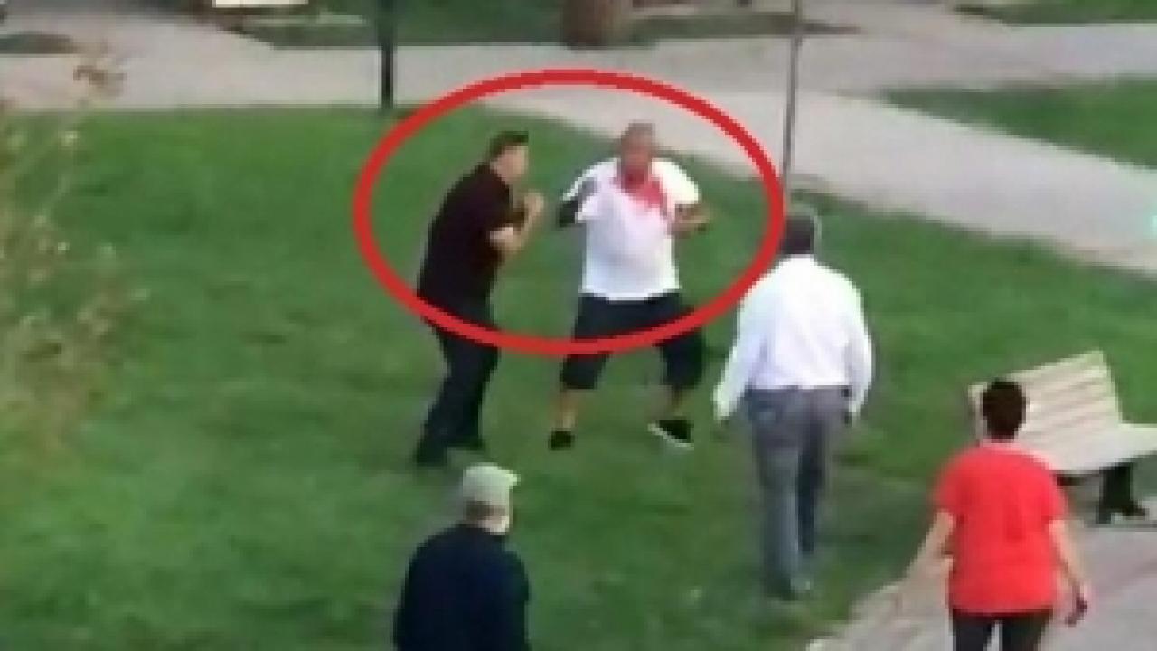 Bursa’da Mehmet A. (39), parktaki çimlere bastığı için tartıştığı Furkan T.’nin (13) bisikletine zarar verdi. Mehmet A., oğlunun şikayeti üzerine parka gelen baba Sadrettin T.’yi (44) de darbetti. O anlar cep telefonu kamerasıyla kaydedildi.
