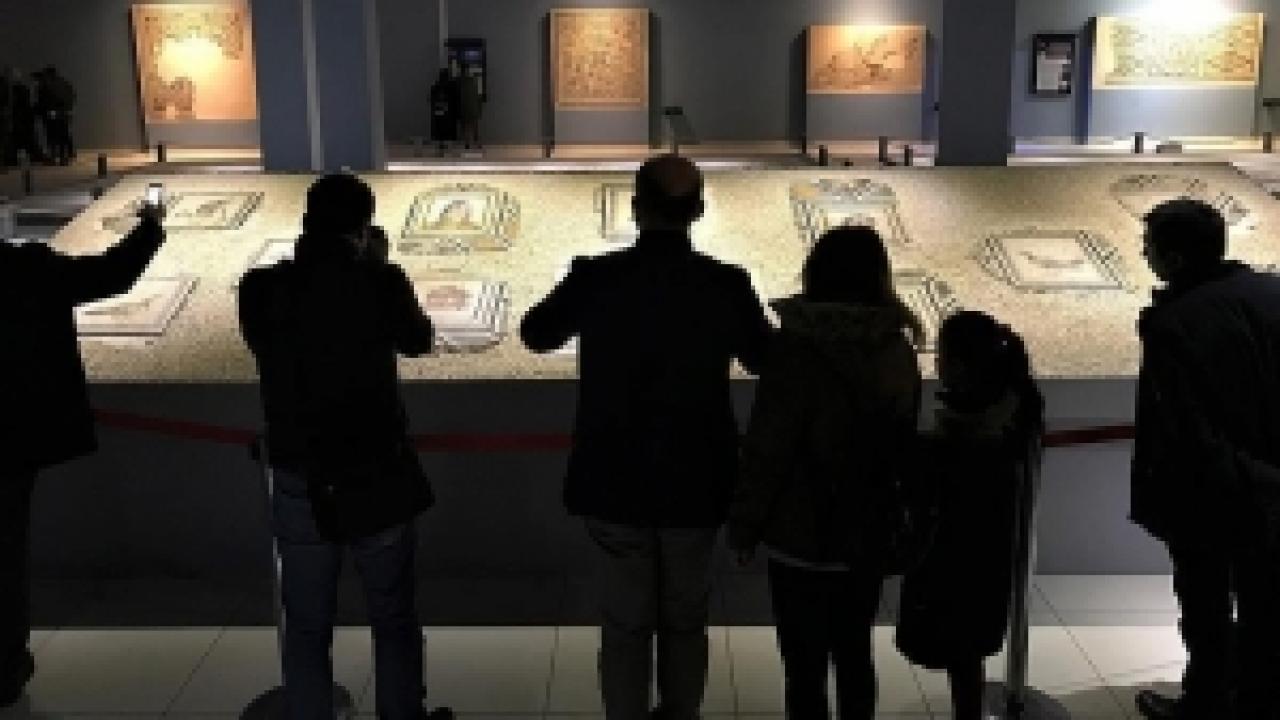 "Çingene Kızı" mozaiğinin ABD'den Gaziantep'e getirilen 12 parçası, ziyaretçilerden yoğun ilgi görüyor. AA