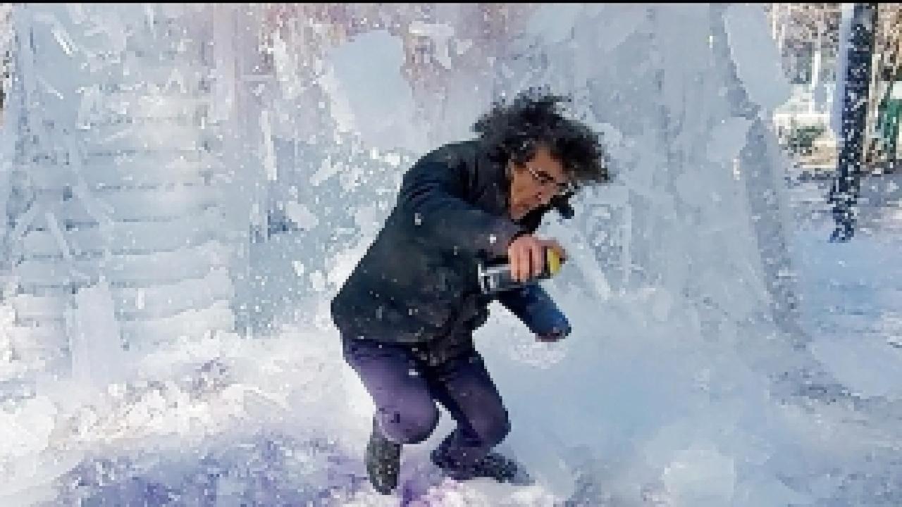 Kadına yönelik şiddete tepki konulu çalışma yapan Güzel Sanatlar Fakültesi Dekanı Prof. Dr. Mehmet Kavukcu, ilk yüzeye 'anne', ikinci yüzeye 'şiddet', üçüncü yüzeye de 'aile' yazdı. Yerdeki buzlara ise 'kadına şiddet' yazarak, performansına devam eden Prof. Dr. Kavukcu, bu sırada 13 metrelik kulenin en üst noktasından buzun çatlama seslerini duydu.