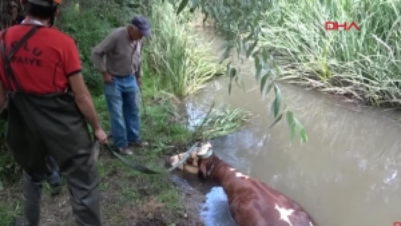 Bolu'da, Örencik köyünde dereye düşen inek, itfaiye ekiplerince kurtarıldı. Örencik köyünde yaşayan Mehmet Arslan'a ait inek, otlatıldığı sırada, su içmeye indiği Ilıcakınık deresine düştü. Derede mahsur kalan ineği kendi imkanlarıyla kurtaramayan köylüler, durumu itfaiyeye bildirdi. Gelen itfaiye ekipleri, yaklaşık yarım saatlik çalışma sonucu, ineğin boynuzlarına halat bağlayarak, bulunduğu yerden kurtardı. İneğin sahibi Mehmet Arslan, itfaiye ekiplerine teşekkür etti. DHA