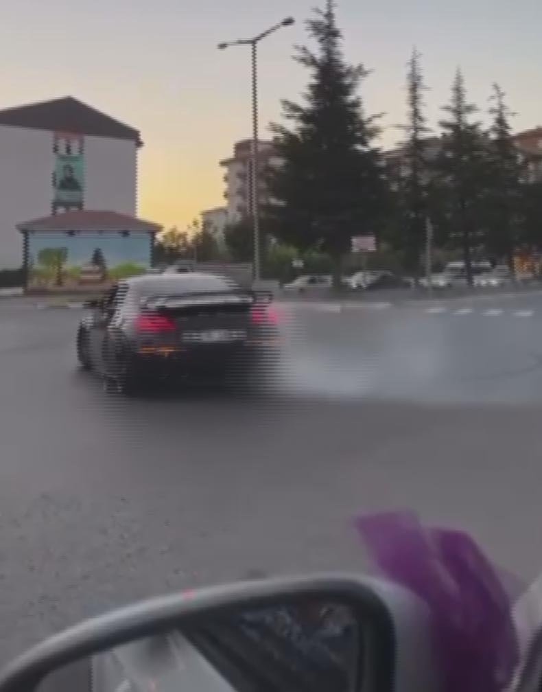 Düğün konvoyu ile giden Cihan O., 16 CHN 46 plakalı aracı ile Alparslan Türkeş Bulvarı'nda drift attı. O anlar, cep telefonu kamerasına yansıdı. İhbarla harekete geçen polis, aracın düğün salonu önünde park halinde olduğunu belirledi.
