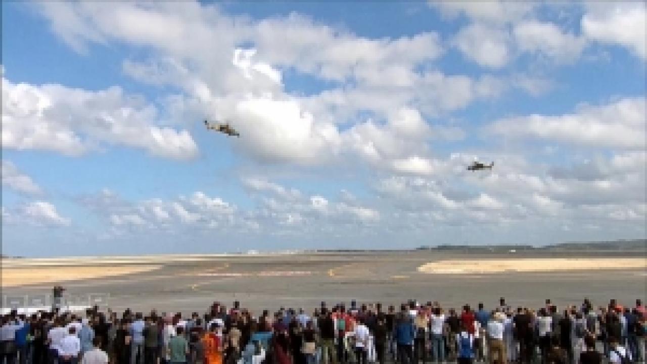 TEKNOFEST İstanbul'un ilk gün etkinlikler kapsamında iki Atak taaruz helikopteri alçak uçuş yaparak yöresel harman dalı oyunu figürleriyle festival alanında gösteri yaptı. AA