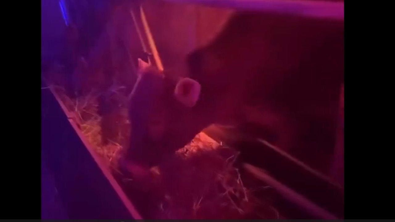 Rengarenk LED ışıklarla çevrili ahırda otlayan ineklerin görüntüsü kısa sürede binlerce kişi tarafından izlendi.