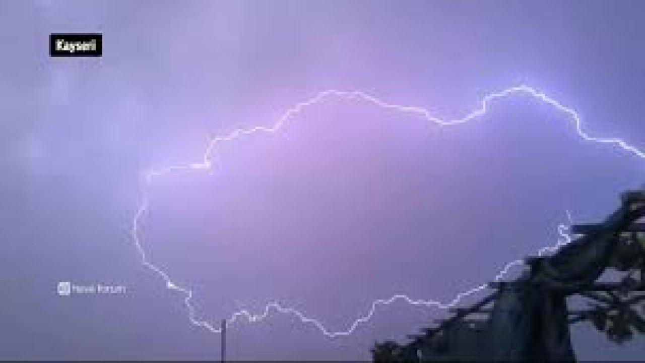 Kayseri'de gece saatleri şiddetli şekilde çakan şimşekler gökyüzünde Türkiye haritasını andıran benzerlikte çakınca sosyal medyada görüntüler hızla gündem olmayı başardı. O anlar ise bölgede yaşayan bir vatandaş tarafından an bean kayda geçti.