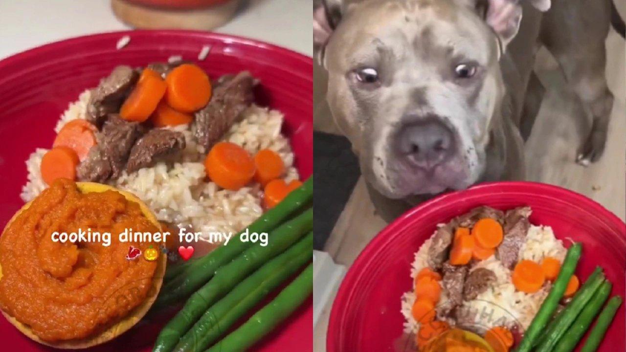 Videoyu izleyenler köpeğin akşam yemeğinin çoğu insanın yemeklerinden daha iyi olduğunu iddia ediyor.