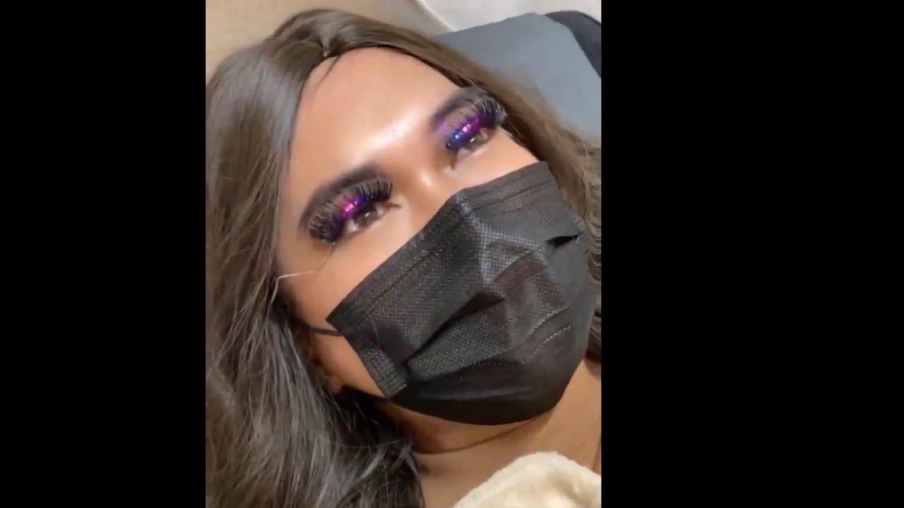 Sosyal medyada yayınlanan bir videoda kirpiklerine ışıklı ve müzikli takma kirpik taktıran bir kadının görüntüleri yer aldı.