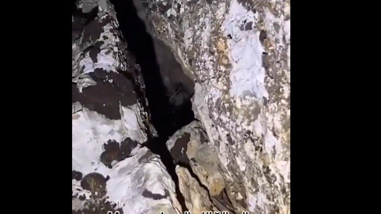 Tam o sırada mağara gibi kayalık bir alandan garip sesler duyulmaya başladı. Kayalıkların arasından gelen sese doğru yönelen bir kişi iki kayanın arasında sıkışan ve garip sesler çıkaran o tanımlanamayan cismi kaydetmeyi başardı.