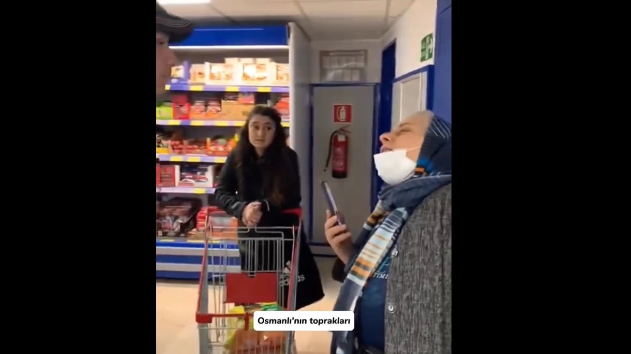 Tartışmanın büyümesi üzerine market görevlileri kavgaya müdahale ederken, gencin “Burası Osmanlı’nın toprakları” diyen kadına, “Teyze burası Türkiye Cumhuriyeti. Benim ülkemi benden çalmayacaksınız” diye bağırdığı duyuldu.