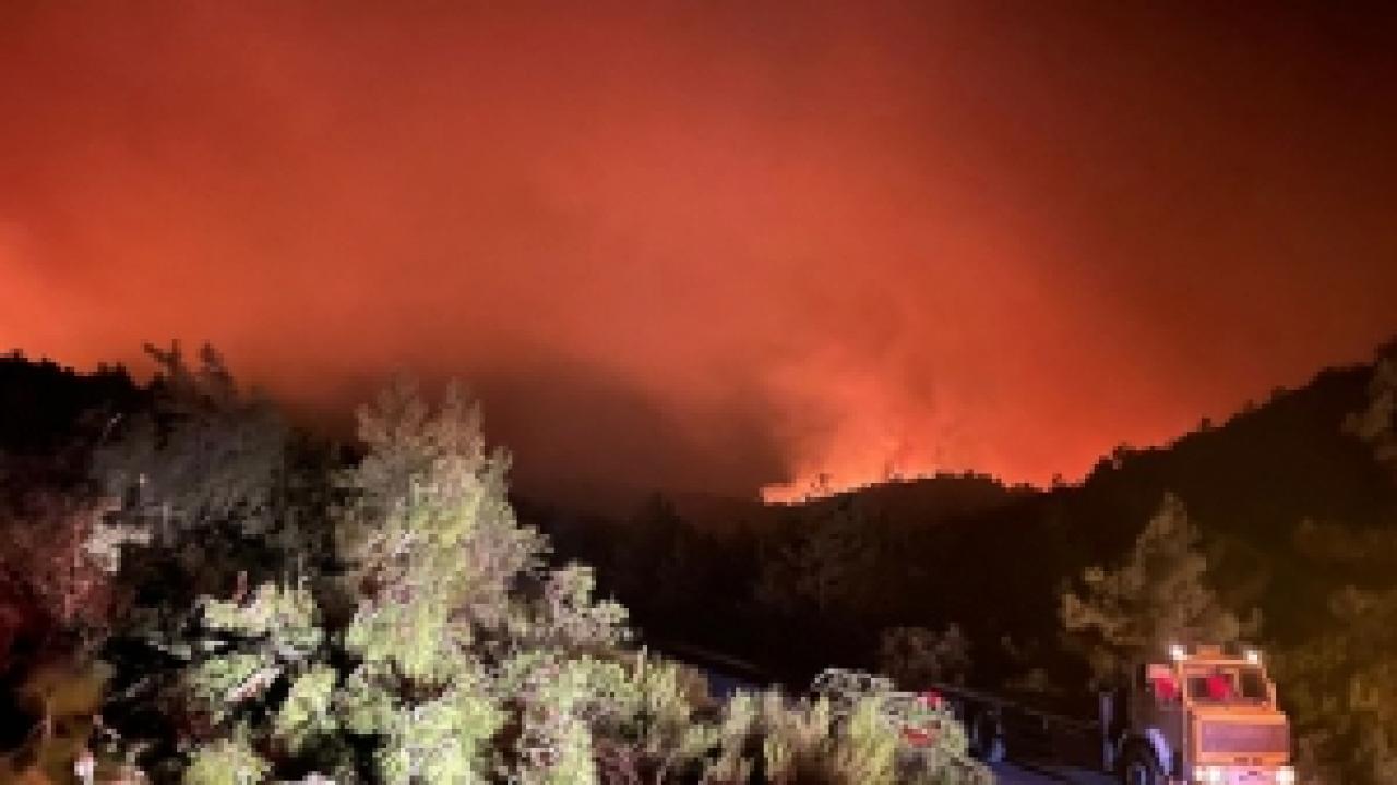 Muğla'nın Marmaris ilçesinde çıkan orman yangını, rüzgarın etkisiyle kısa sürede geniş alana yayıldı. Ekipler, havadan ve karadan söndürme çalışmalarını sürdürüyor. DHA