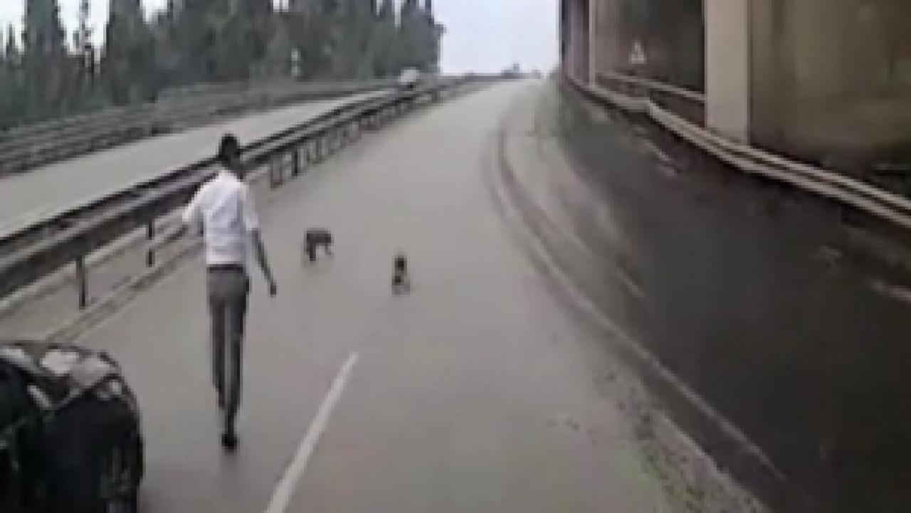 Kocaeli'nin Körfez ilçesi D-100 Karayolu'nda seyir halindeki otobüs şoförü, yolda fark ettiği sokak köpeklerini ezilmekten son anda kurtardı.