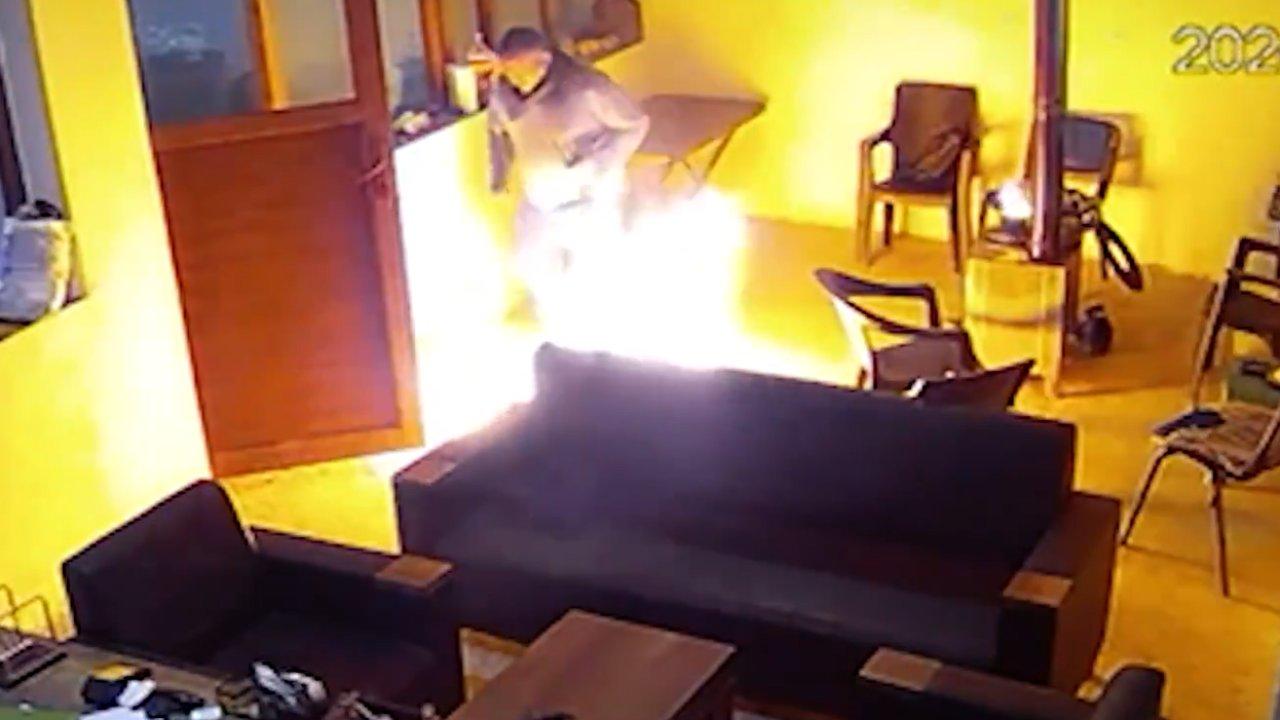 Panikle bidonu elinden bırakan adam alevlerin tüm odayı sarmaya başladığını görünce kaçmak istedi. Ancak tam o esnada odanın kapısı da kapanınca içerde kedisiyle birlikte mahsur kaldı.