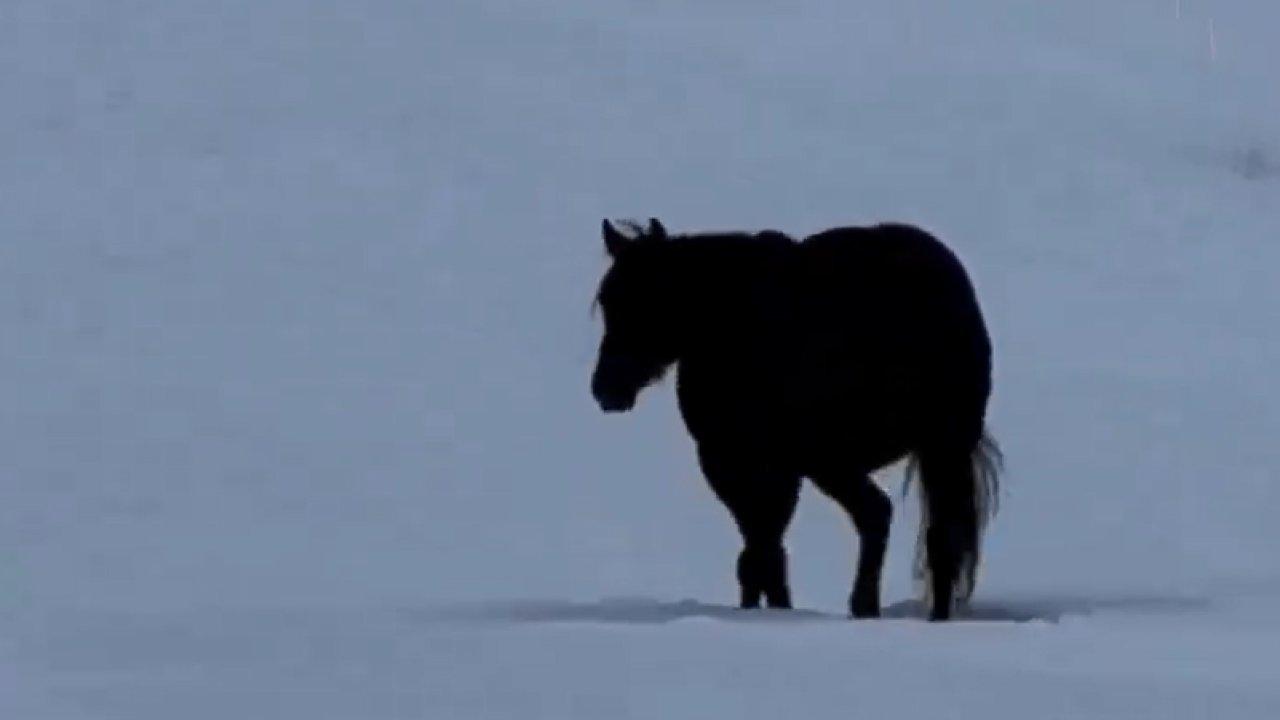 Karlı bir yolda seyir halinde olan bir atın gittiği yön kafaları karıştırdı!