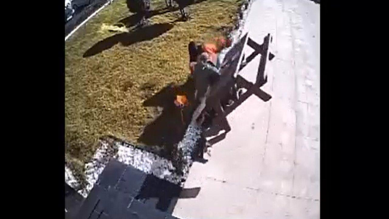 Talihsiz kaza sonrasında kadınlar yere düşerken masada yer alan yiyecek ve içeceklerin hepsi de yere döküldü.