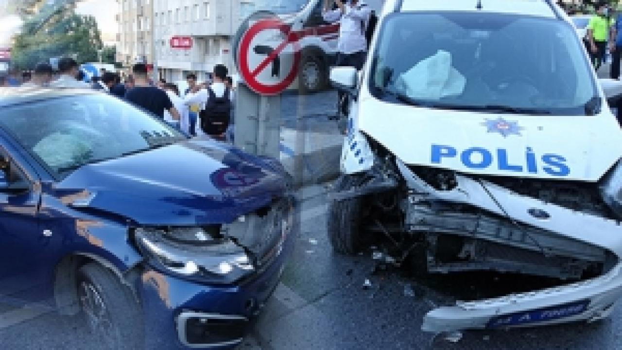 Sultangazi'de polis aracı ile otomobil kafa kafaya çarpıştı: 2'si polis, 3 yaralı
