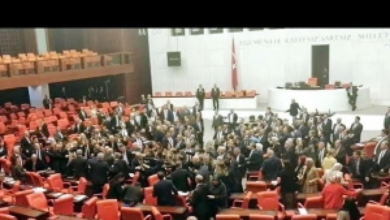 TBMM Genel Kurulu'nda CHP'nin İdlib konusundaki önergesi görüşülürken CHP ve AK Parti milletvekilleri arasında yumruklu kavga çıktı. TBMM Genel Kurulu, TBMM Başkanvekili Süreyya Sadi Bilginç başkanlığında toplandı. Genel Kurulu'da CHP'nin İdlib'de Türk askerlerinin güvenliğine ilişkin grup önerisi görüşülürken, CHP Grup Başkanvekili Engin Özkoç, kürsüye çıktı. Özkoç'un, Genel Kurul'daki konuşması AK Parti milletvekillerinin tepkisine neden oldu. Genel Kurul öncesinde düzenlediği basın toplantısında Cumhurbaşkanı Recep Tayyip Erdoğan'a yönelik sözleri nedeniyle de tepki toplayan Özkoç'un üzerine bir grup milletvekili yürüyünce gerginlik arttı. CHP milletvekillerinin de tartışmaya dahil olmasıyla birlikte tartışma büyüdü ve arbede yaşandı. Arbede yumruklu ve tekmeli kavgaya döndü. Bazı milletvekilleri arbede sırasında yere düştü, sandalyeler devrildi. Yaşananlar nedeniyle genel kurula ara verilirken, gerginlik devam ediyor. DHA