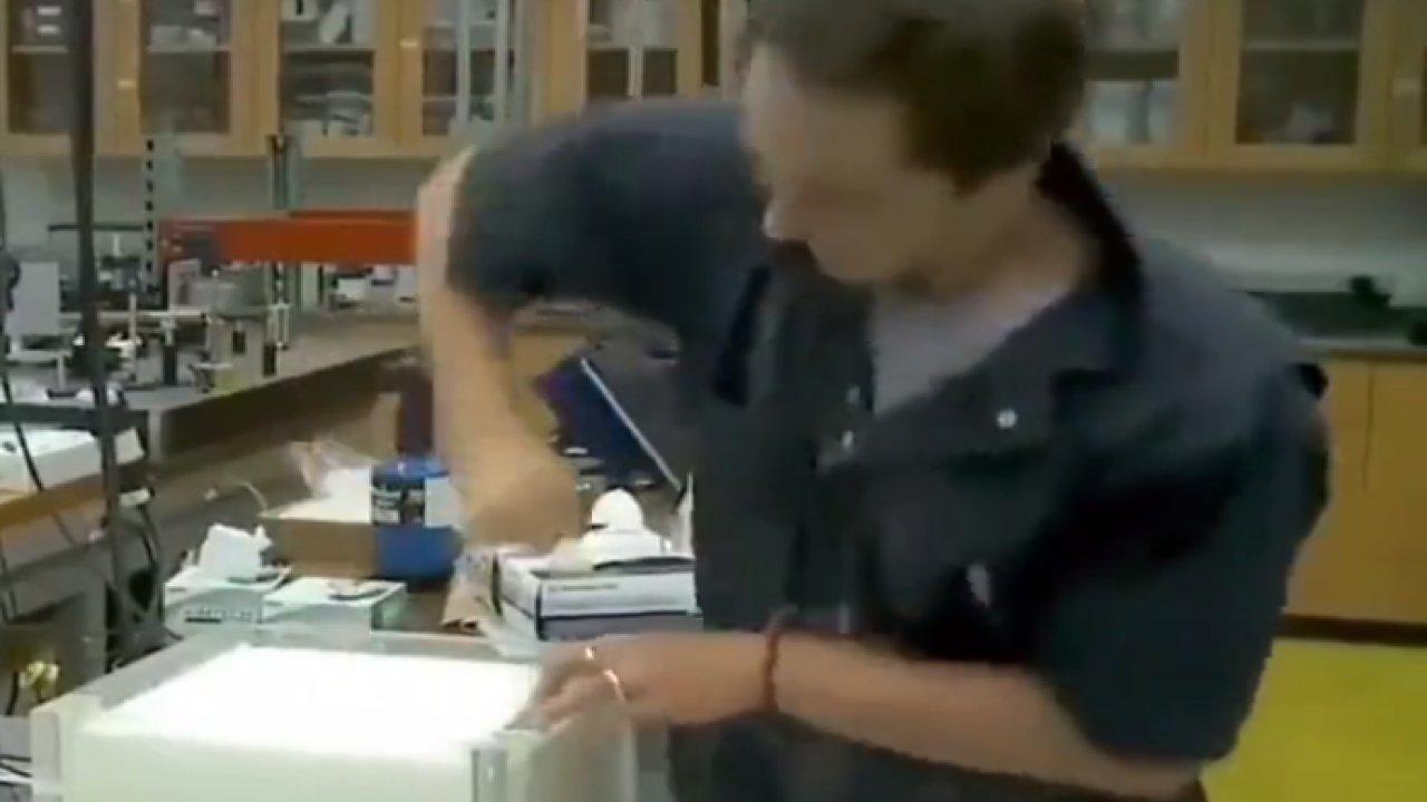 Yurt dışında bir bilim çalışması esnasında çekildiği tahmin edilen videoda bir kap içinde yer alan suyun kendisine gösterilen tepkiye göre farklı sertlik derecelerine dönüştüğü anlar yer alıyor.