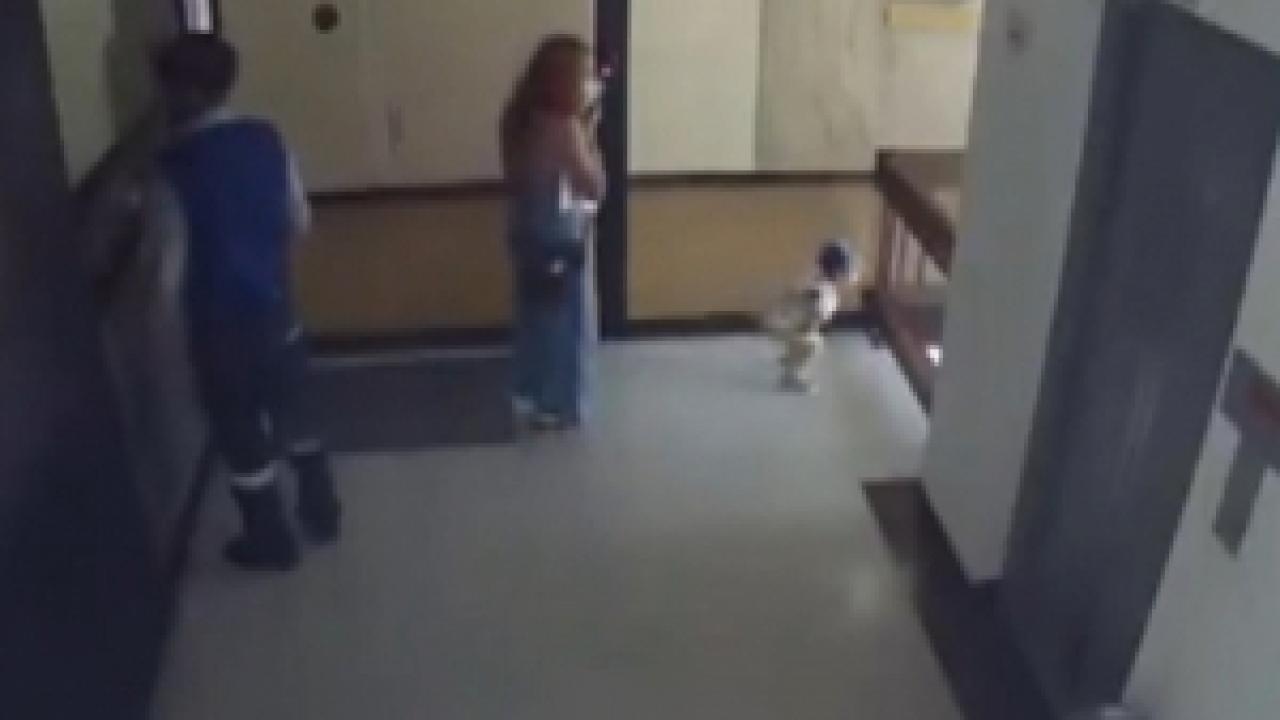 Kolombiya’da ofis binasında telefona bakan kadın, yanından uzaklaşıp, gittiği merdiven boşluğunda, düşme tehlikesi geçiren bebeğini, son anda yakaladı. O anlar saniye saniye kameraya yansıdı.