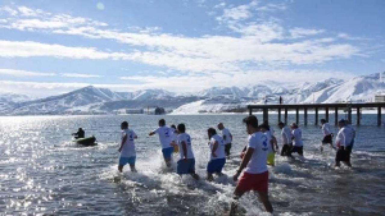 Bitlis'in Tatvan ilçesinde bir araya gelen Van Gölü Aktivistleri Derneği üyeleri, eksi 8 derecede Van Gölü’nde yüzdü. Van Gölü Aktivistleri Derneği Başkanı Erdoğan Özel, gölde yaşanan kuraklık ve kirliliğe dikat çekmek için böyle bir etkinlik düzenlediklerini söyledi. DHA