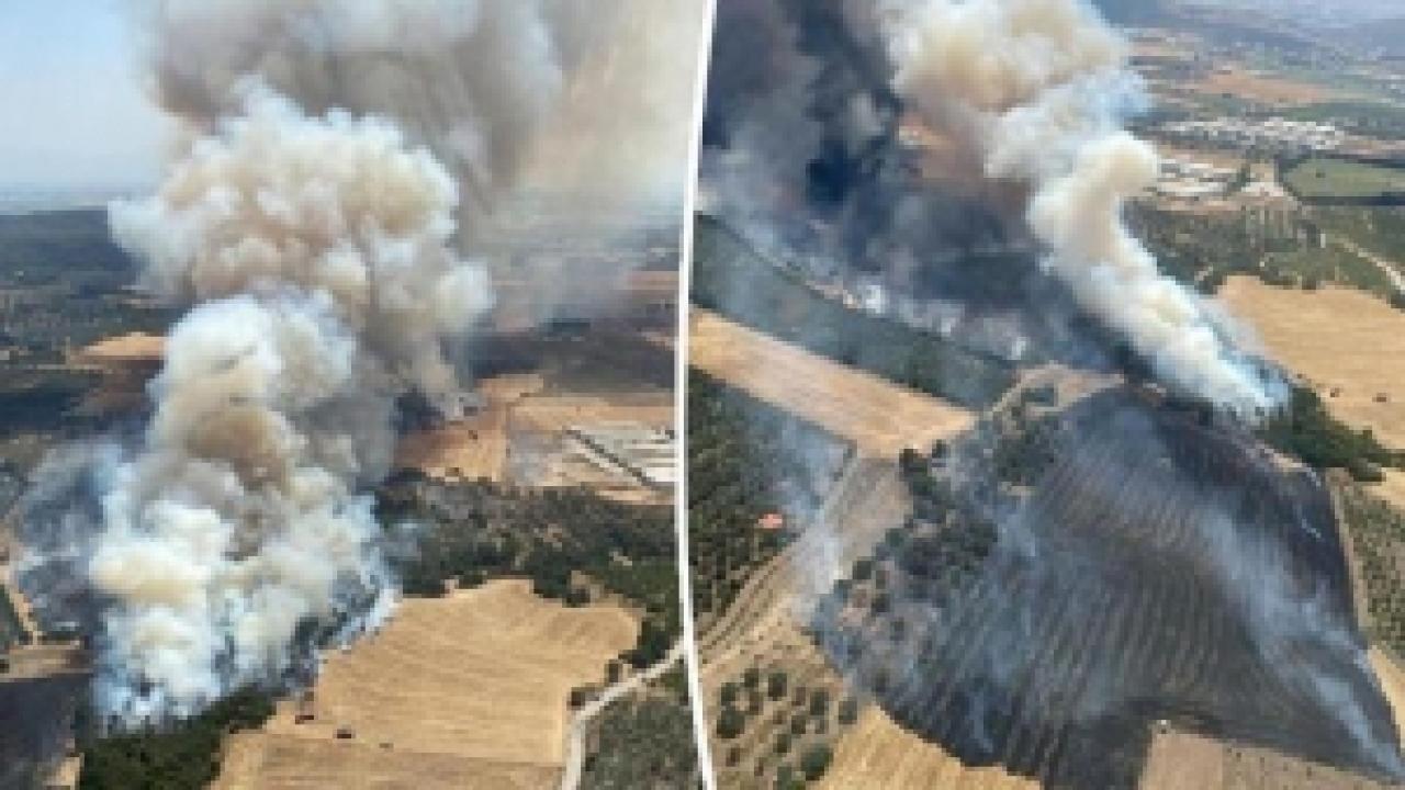 İzmir'in Foça ilçesinde, orman yangını çıktı. Alevlere havadan ve karadan müdahale başlatıldı. DHA