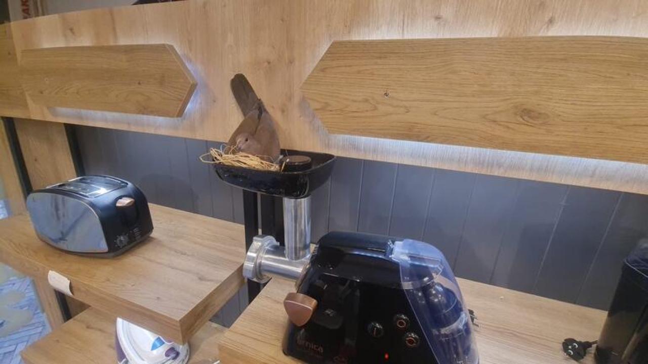 İzmit'te bir mağazaya giren üveyik, reyondaki kıyma makinesinin üzerine yuva yaparak, yumurtladı.