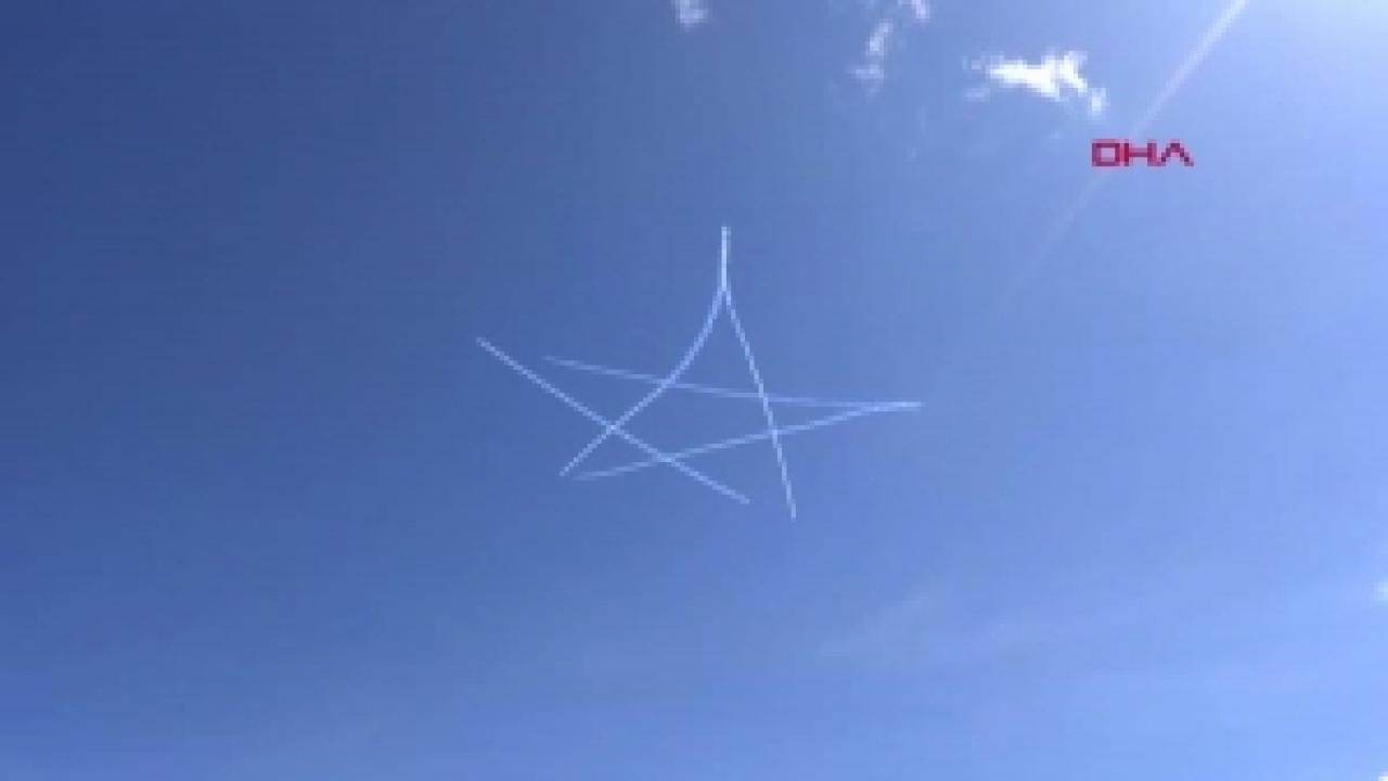 Türk Hava Kuvvetleri akrobesi timi Türk Yıldızları, Ağrı'nın düşman işgalinden kurtuluşunun 104'üncü yıl dönümünde gösteri uçuşu yaptı. Halk, gökyüzünde şov yapan Türk Yıldızları'nı cep telefonlarıyla görüntülemeye çalıştı.