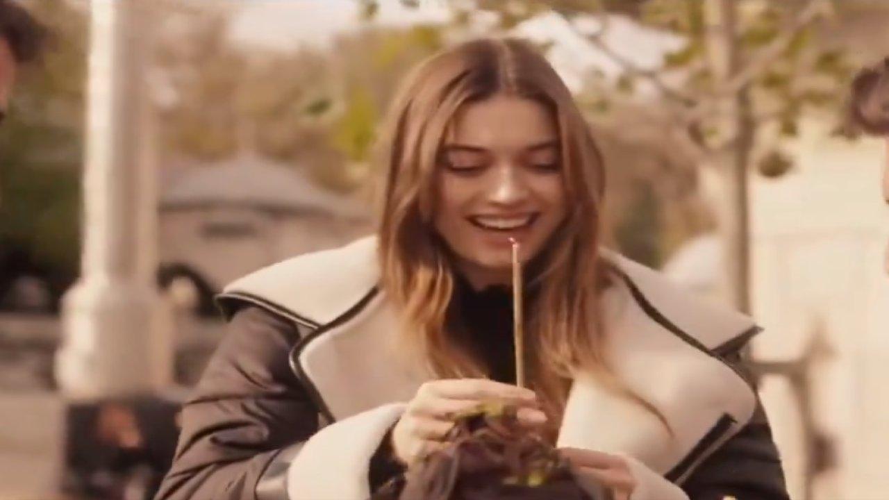 Yalı Çapkını setindeki çekimleri sırasında Afra Saraçoğlu'nun yanına getirilen büyük pasta dikkat çekti.