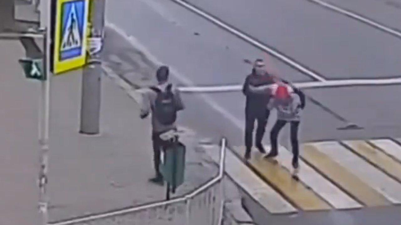 Yaya geçidi üzerinde yaşanan ilginç kavganın görüntüleri caddede bulunan güvenlik kamerasına yansıdı.