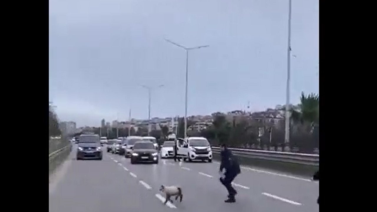 İlginç olay, Trabzon ilinde sahil yolu üzerinde meydana geldi. Sahibinin elinden kaçan minik bir kuzu yola atladı.