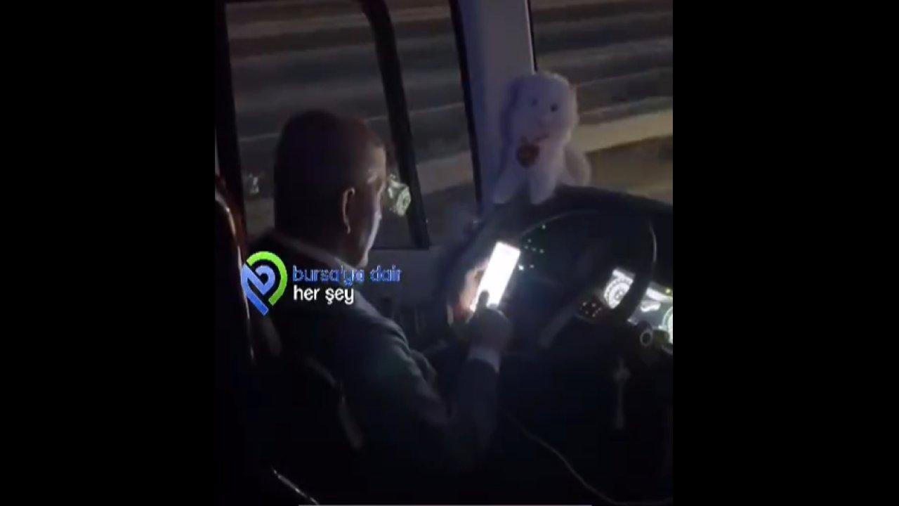 Olay, Bursa şehrinde terminalden yola çıkan bir otobüste meydana geldi. Otobüsün ön koltuğunda oturan yolcu tarafından saniye saniye görüntülenen anlarda oldukça süratli olan otobüsün şoförünün elindeki cep telefonuna baktığı görülüyor.