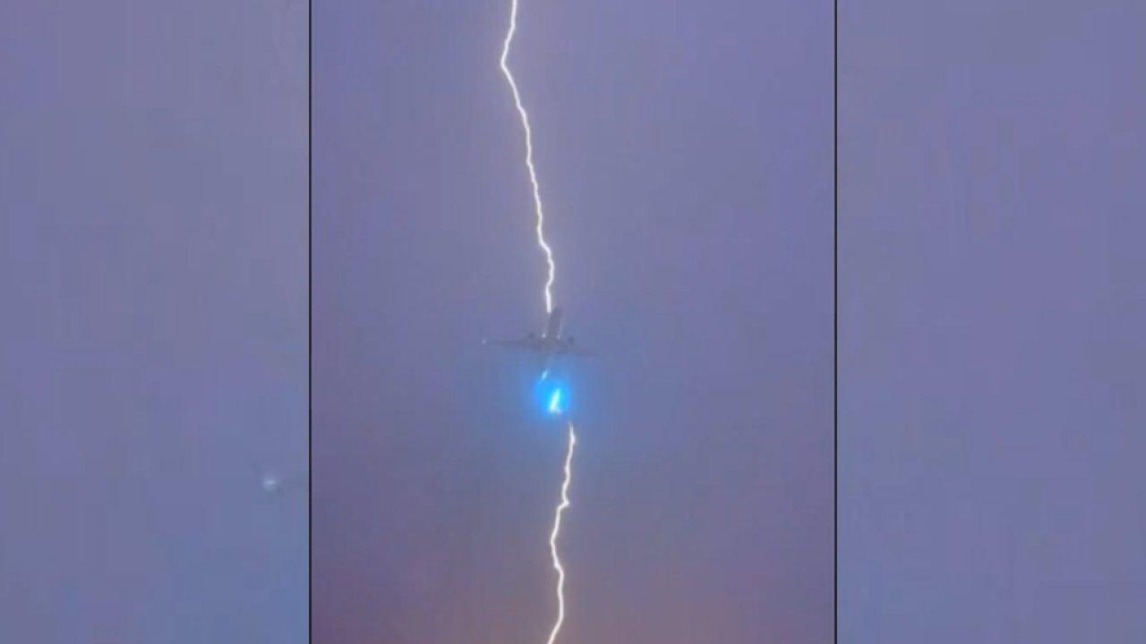 Yolcu dolu uçağa yıldırım düştüğü anlar kameralar tarafından kaydedilirken görüntüler sosyal medyada yayınlandı.
