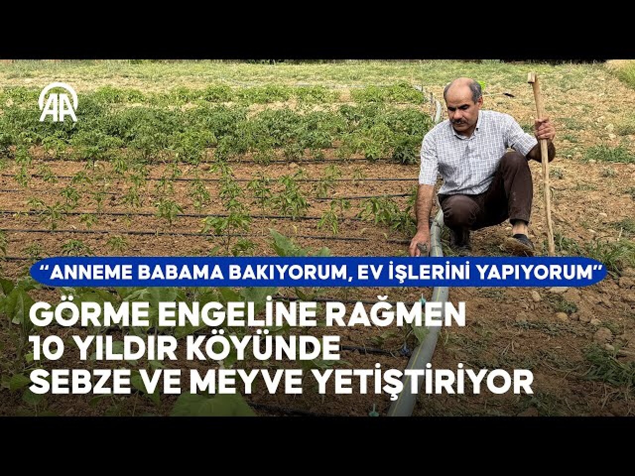 Elazığ'ın Üçağaç köyü Kuruçay mezrasında yaşayan Abubekir Orhan, görme engeline rağmen 10 yıldır sebze meyve yetiştiriyor, hasta anne ve babasına bakıyor.