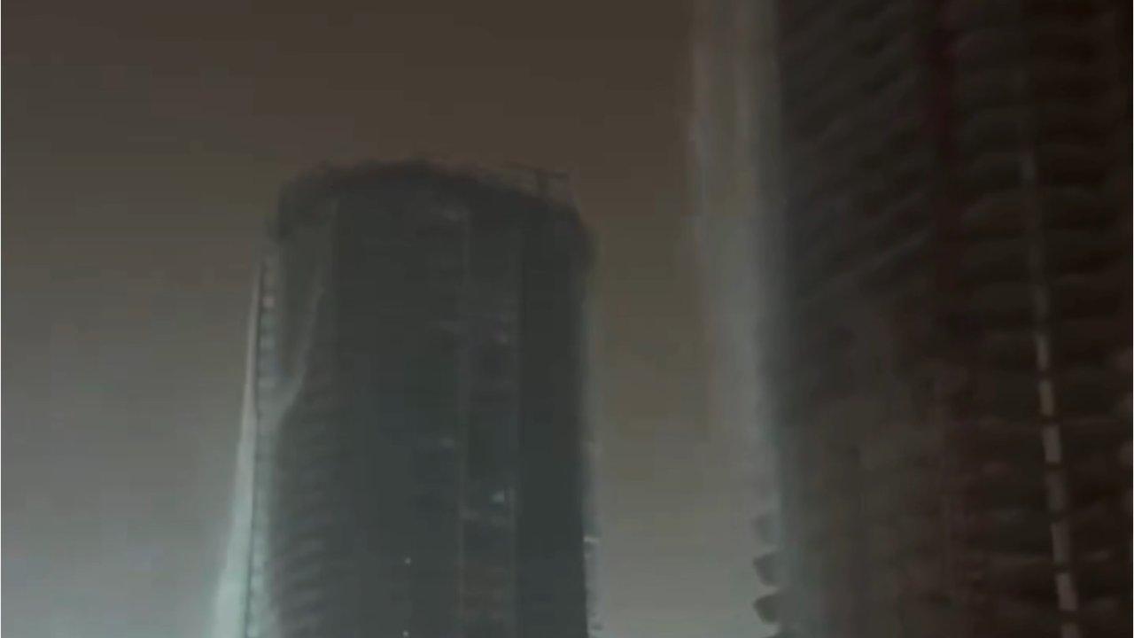 Ankara'da bulunan inşaat halindeki bir gökdelenden aşırı yağış nedeniyle yukarıdan aşağıya adeta şelale gibi yağmur suyu aktı. O anlarda gök gürültülü sağanak yağış devam ederken trafikte olan bir sürücü an bean görüntüleri kaydetmesiyle kuvvetli yağışın net hali gözler önüne serildi.