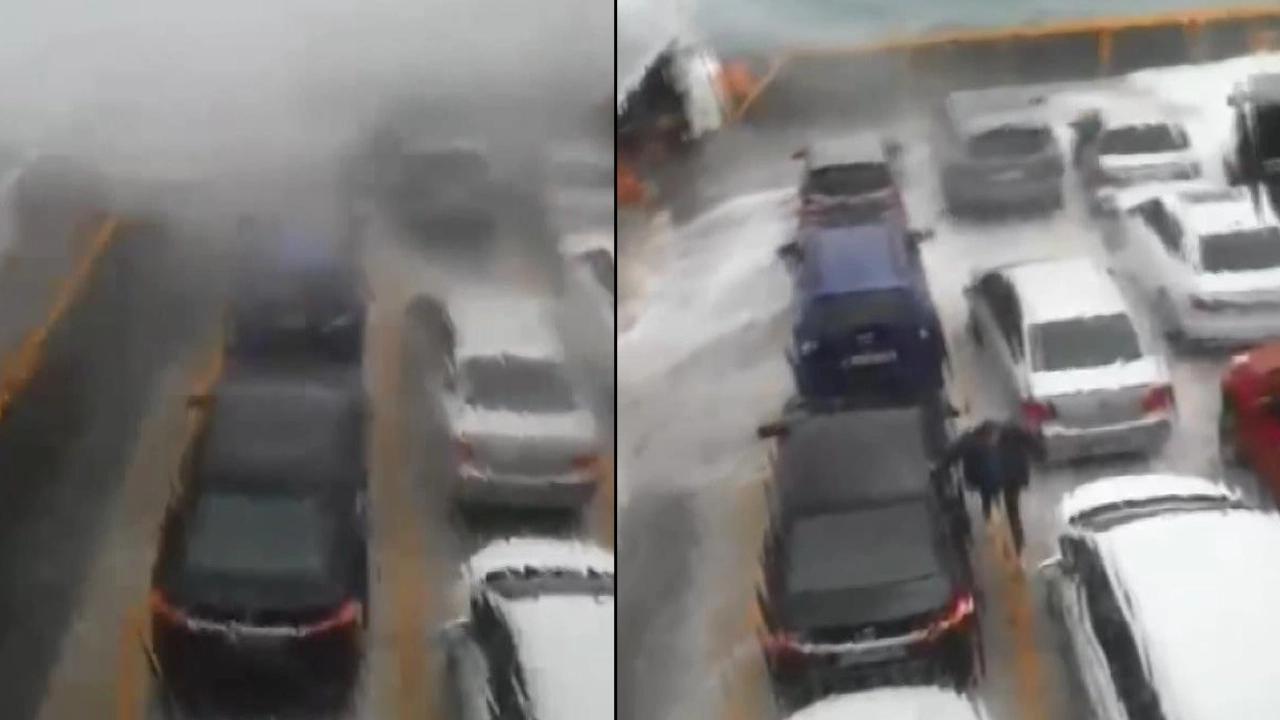 Fırtınanın etkisiyle yükselen dalgalar araçların camlarının kırılmasına ve göçükler oluşmasına neden oldu. Yüksek dalgalar nedeniyle zor anlar yaşayan feribottaki yolcular, o anları cep telefonu kamerasıyla kaydetti.