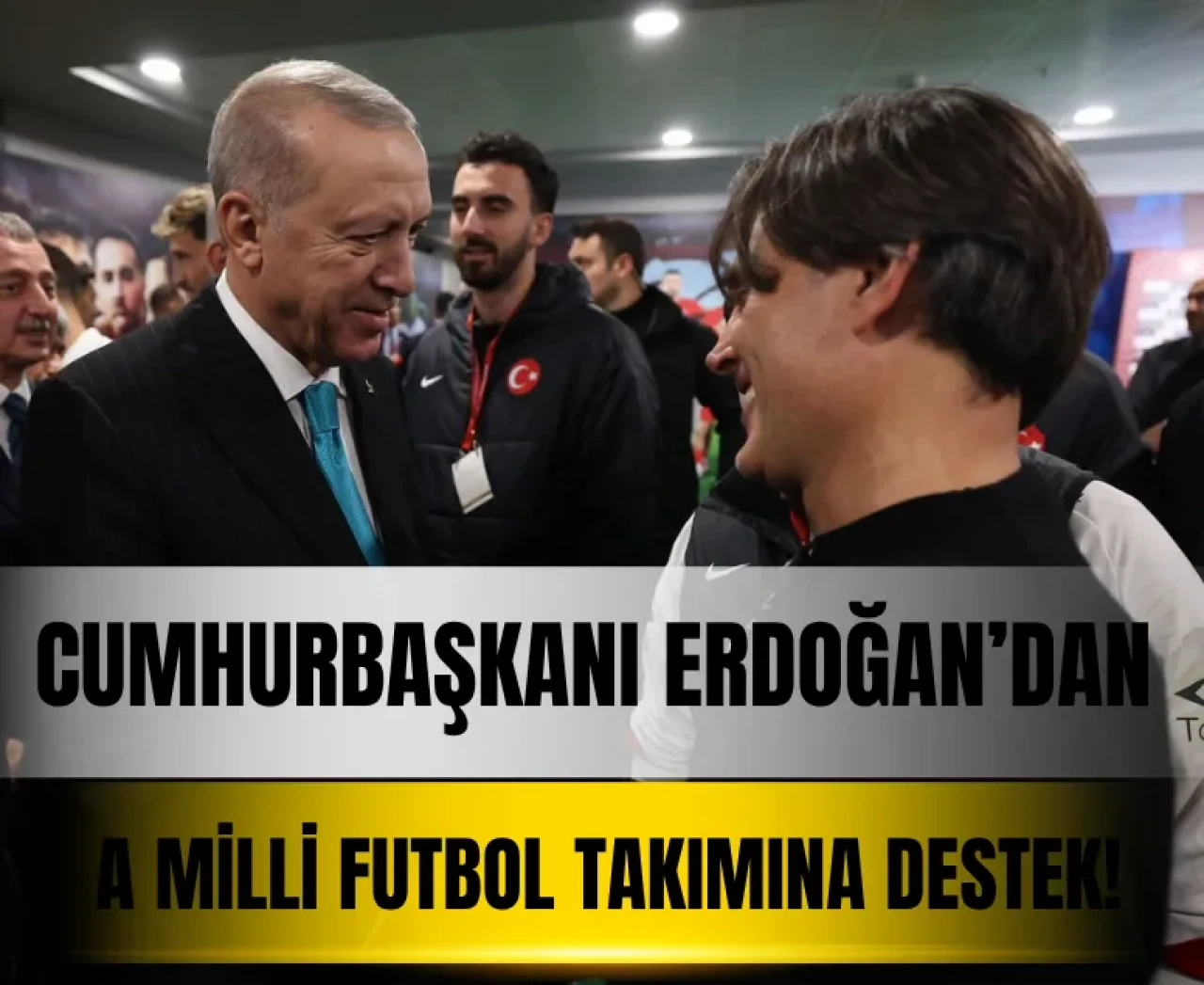 Cumhurbaşkanı Erdoğan, Kocaeli Stadyumu'nda oynanan Türkiye-Gürcistan maçının ardından Türkiye A Milli Futbol Takımı oyuncularını ve teknik heyetini tebrik etti.