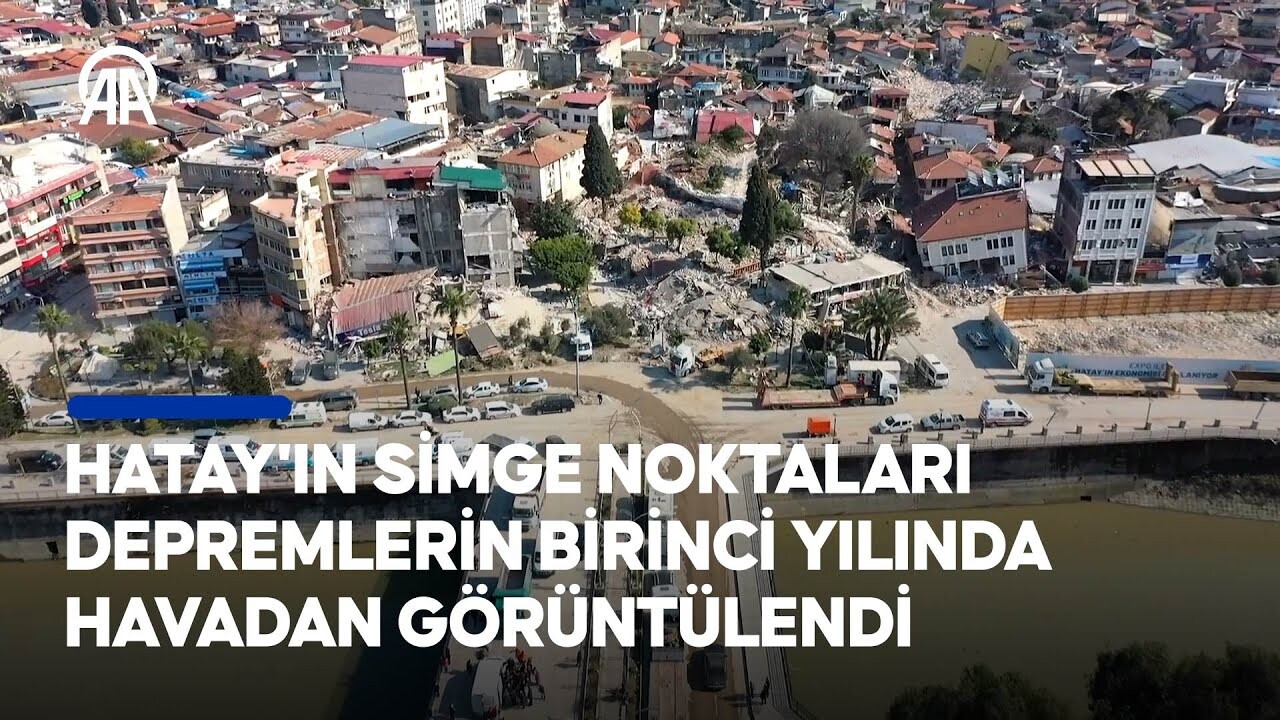 Kahramanmaraş'ta geçen yıl 6 Şubat'ta meydana gelen 7,7 ve 7,6 büyüklüğündeki depremlerden en çok etkilenen kentlerin başında Hatay yer aldı. Afetler, kentteki kamu binalarının da aralarında olduğu 80 binden fazla yapıda yıkıma veya ağır hasara yol açtı. Şehirde Fransız mimar Leon Benju tarafından 1927'de inşa edilen ve Hatay Devleti'nin Türkiye'ye katıldığı 29 Haziran 1939'a kadar bir yıl meclis binası olarak hizmet veren bina ile Habib-i Neccar Camisi gibi önemli vakıf eserleri de yıkıma uğradı. Enkaz kaldırma işlemlerinin büyük ölçüde tamamlandığı Hatay'da, deprem konutlarının yapımı ve hasar gören kültürel mirasın yeniden ayağa kaldırılması için çalışmalar sürüyor. Anadolu Ajansı ekibi, depremden 1 yıl sonra Antakya ilçesinin simge yerlerinden Atatürk ve Cumhuriyet caddeleri, Künefeciler Meydanı ile yapılaşmanın yoğun olduğu Köprübaşı mevkisini havadan görüntüledi. Kentin güncel durumuna ilişkin görüntüler, depremlerin ardından yapılan kayıtlarla birleştirildi.