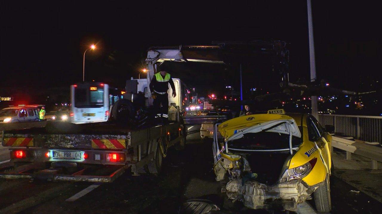 Kaza, saat 03.30 sıralarında 15 Temmuz Şehitler Köprüsü Avrupa Yakası çıkışında meydana geldi. Edinilen bilgiye göre, alkollü olduğu öğrenilen sürücü C.A'nın hakimiyetindeki 34 CVG 730 plakalı otomobil, N.B.'nin kullandığı 34 TFN 05 plakalı taksiyle çarpıştı. Aynı yönde ilerleyen ve kaza nedeniyle oluşan trafikte yavaşlayan 3 aracın daha zincirleme kazaya karışmasıyla 2 kişi yaralandı. İhbar üzerine olay yerine polis, itfaiye ve sağlık ekipleri sevk edildi. Kazaya karışan takside sıkışan şoför N.B., itfaiye ekipleri tarafından kurtarılarak sağlık ekiplerine teslim edilirken polis ekipleri ise kaza yerinde güvenlik önlemleri aldı.