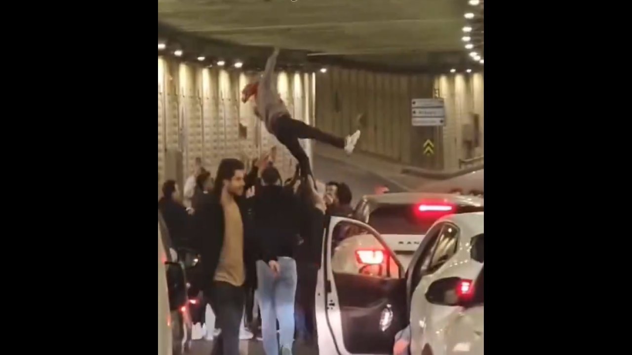 İstanbul’un Ümraniye ilçesinin Dudullu semtinde asker eğlencesi düzenlendi. Arkadaşlarını askere uğurlamak isteyen bir grup alt geçidi kapatarak tezahüratlar eşliğinde arkadaşlarını havaya attı. Bu esnada araçlarında olanlar da korna çalarak eşlik etti.