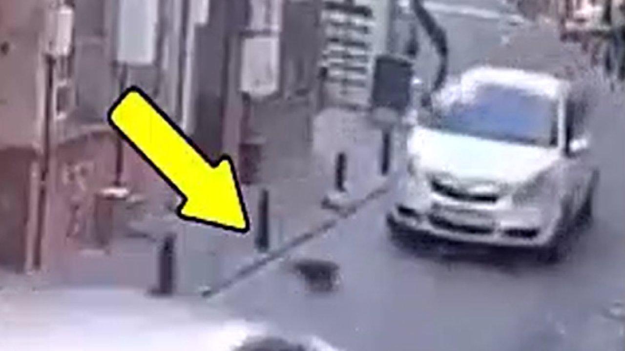 Aracın çarptığı kedi yaşamını yitirirken, yürek burkan kaza anı sokakta bulunan bir güvenlik kamerasına yansıdı.