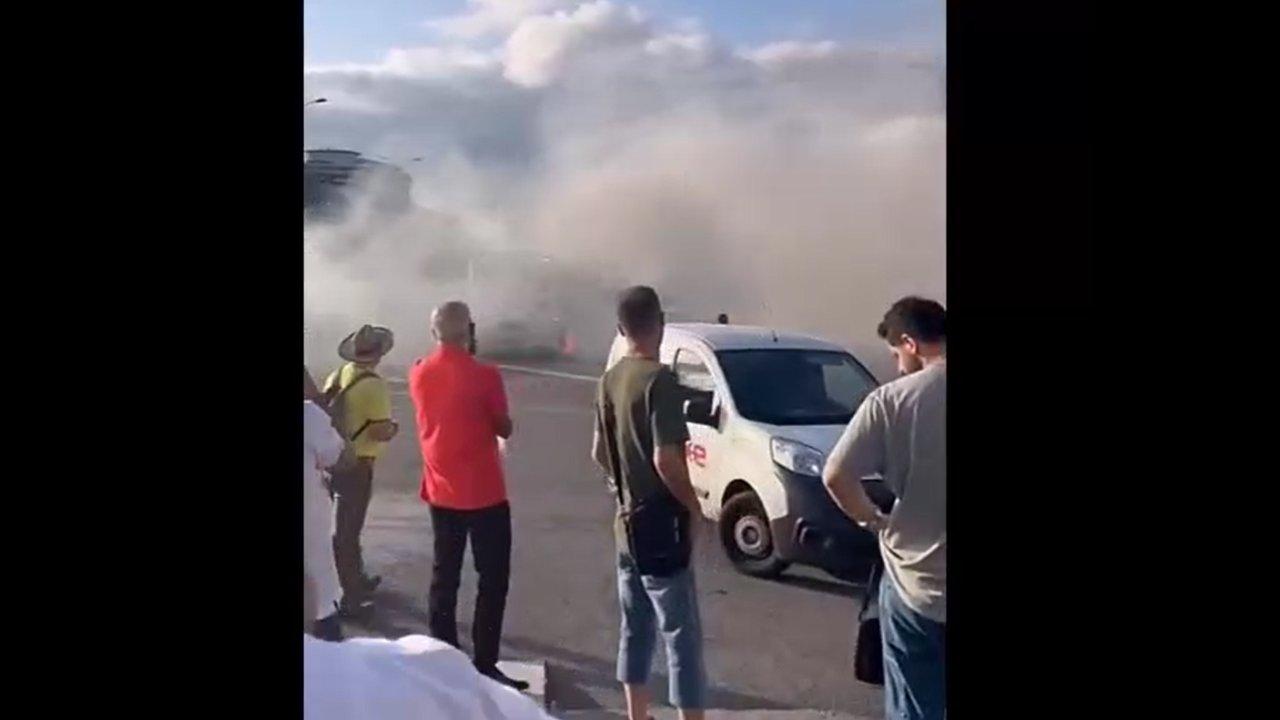 Avcılar’da Beylikdüzü istikametinde seyreden bir metrobüsten bir anda dumanlar yükselmeye başladı. İçinde yolcu olup olmadığı bilinmeyen metrobüsten çıkan dumanlar gökyüzünü kaplarken aracın lastik bölümünde alevler çıktı.
