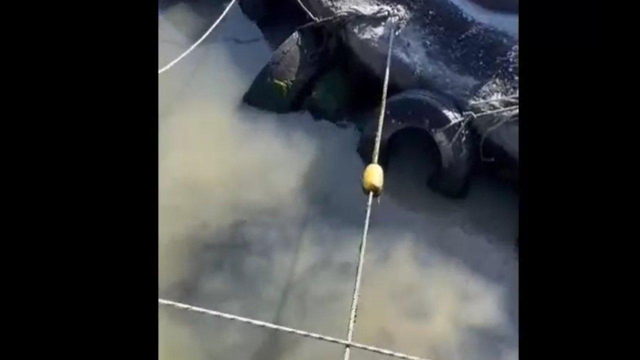 İddialara konu olan alanda, denizin renginin kahverengiye döndüğü görülürken, pis suyun denize karışarak açıklara doğru ilerlediği anlar da görüntülere yansıdı.