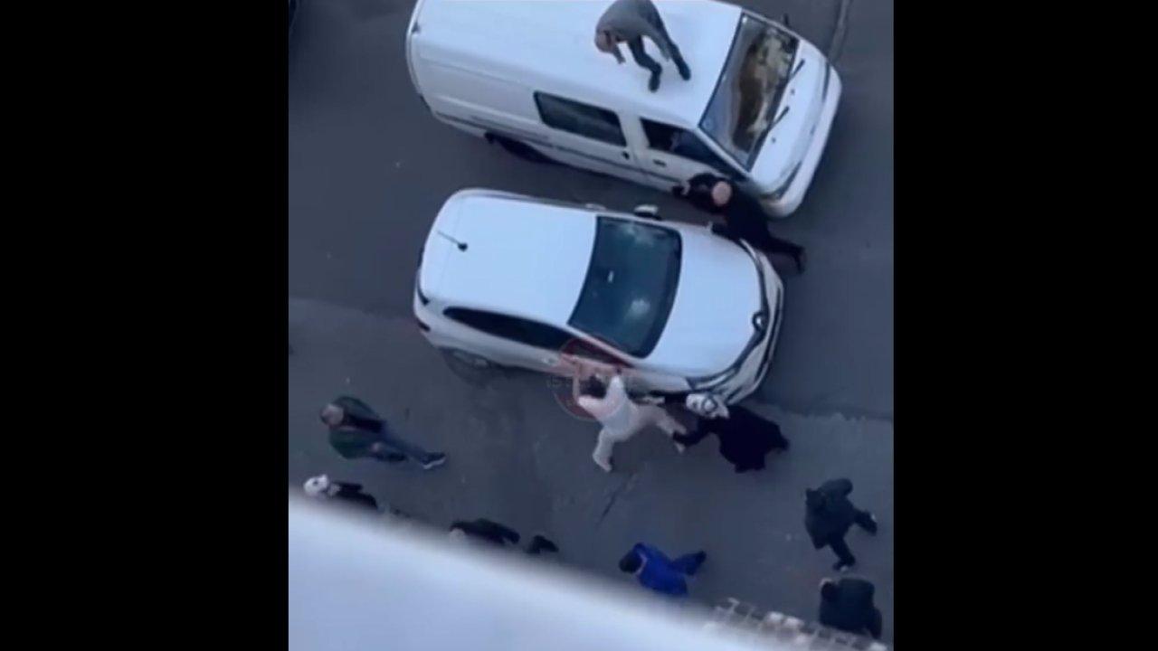 Eline balyozu alan kişi kavga ettiği adamın arabasının camlarını kırarken, daha sonra balyozu onun elinden kapan diğer araç sahibi de ikinci araca zarar vermeye başladı.