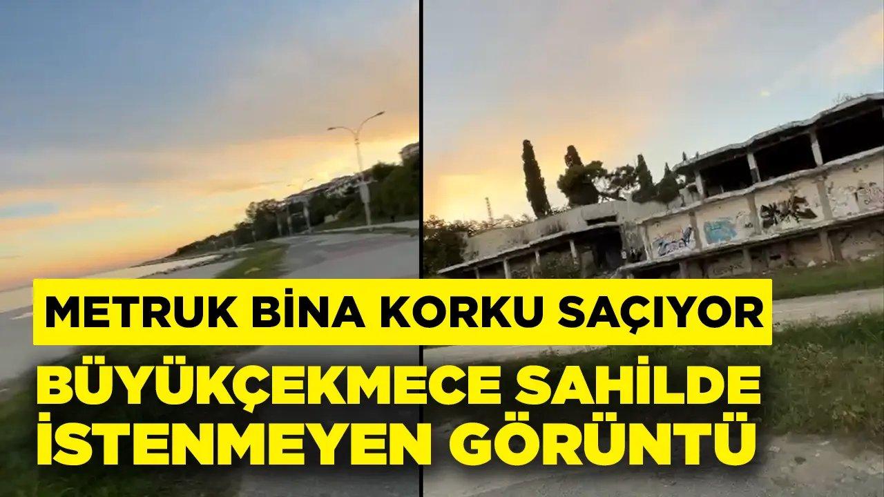 Büyükçekmece ilçesine bağlı Mimarsinan Sahili’nde yer alan ve eskiden Akbank’ın dinlenme tesisleri olarak kullanılan bina uzun süredir boş halde. Denizin hemen kenarında yer alan metruk yapı hava karardıktan sonra tehlike yaratmaya başlıyor.