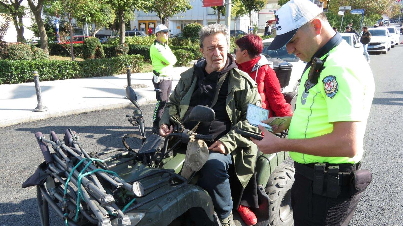 Denetimler sırasında kaskı takılı olmadığı için durdurulan ATV sürücüsüne cezai işlem uygulandı. ATV'deki kadın yolcu, görüntü alan basın mensuplarına tepki gösterdi.