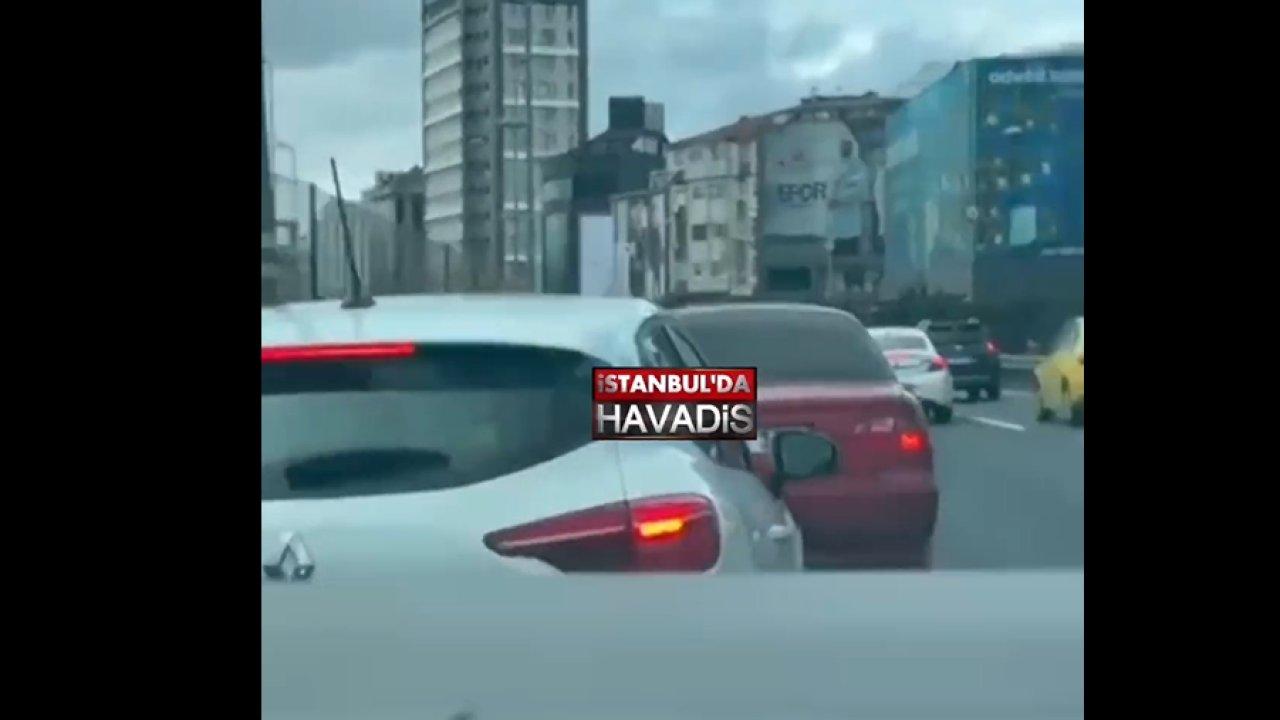 İstanbul trafiğinde yaşanan kavgalara bir yenisi daha eklendi. D-100’ün ortasında birbirinin üzerine süren iki araç şoförü yol ortasında kavgaya tutuştu. O anları bir vatandaş başka bir aracın içinden saniye saniye kaydetti.